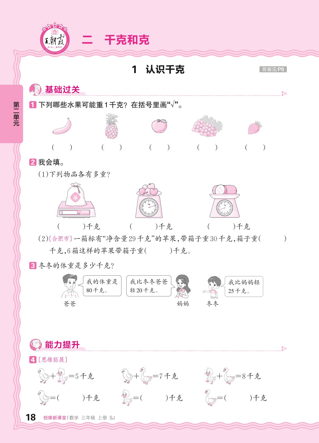 2024秋上册三年级数学苏教版 第二单元 千克和克 ——1. 认识千克