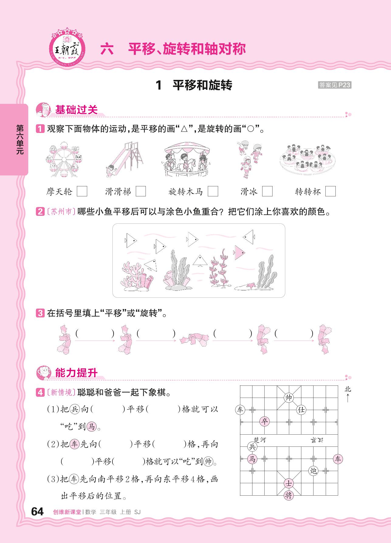 2024秋上册三年级数学苏教版 第六单元 平移、旋转和轴对称——1. 平移和旋转