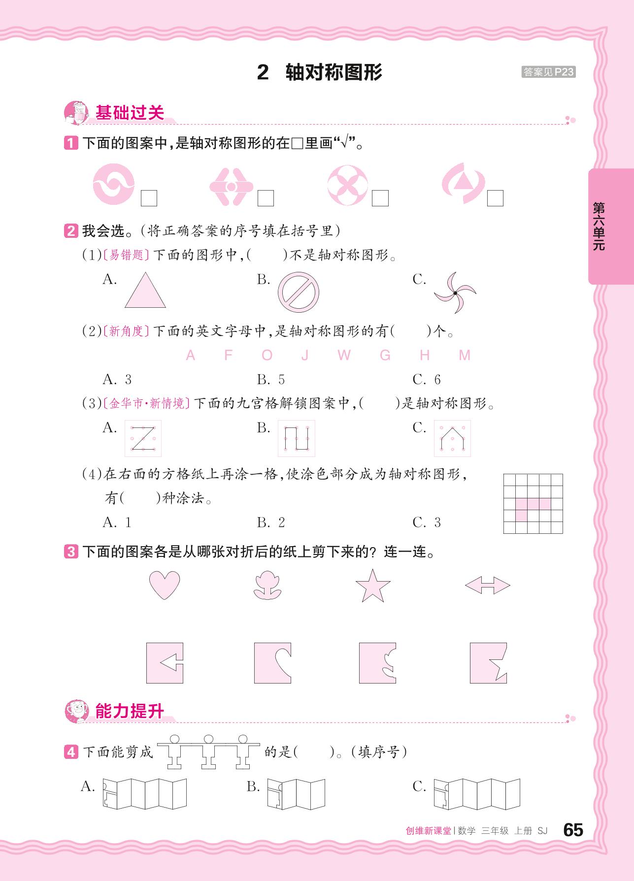 2024秋上册三年级数学苏教版 第六单元 平移、旋转和轴对称——2. 轴对称图形