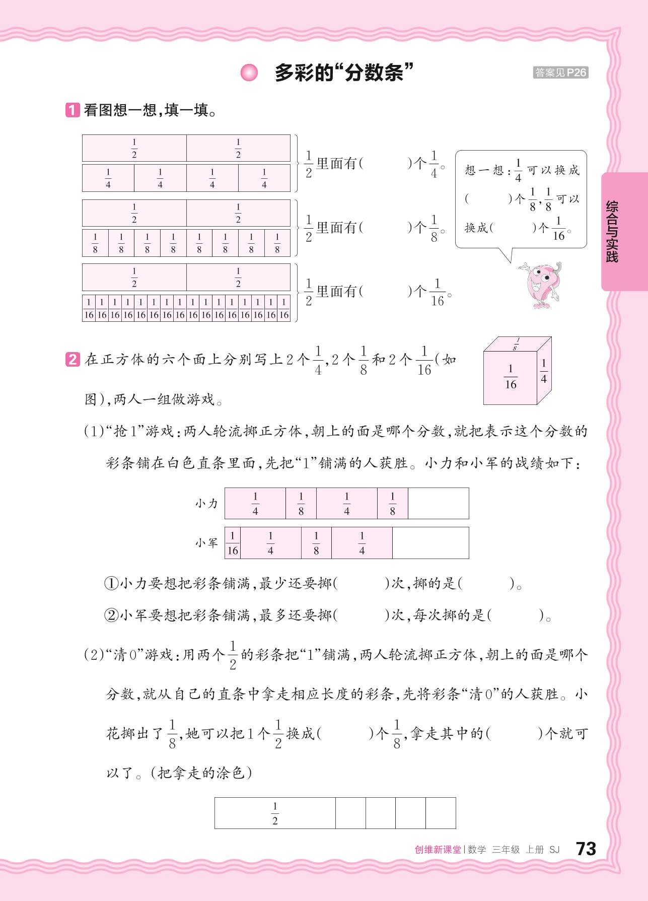 2024秋上册三年级数学苏教版 第七单元 分数的初步认识(一)——多彩的“分数条”