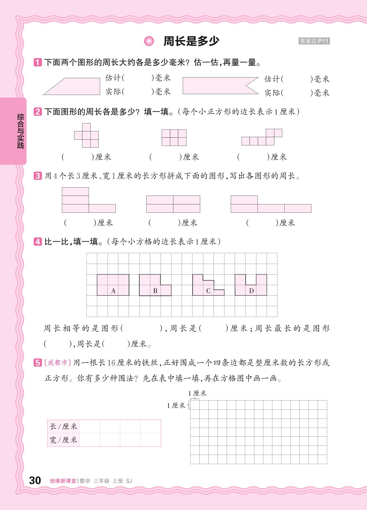 2024秋上册三年级数学苏教版 第三单元 长方形和正方形——周长是多少