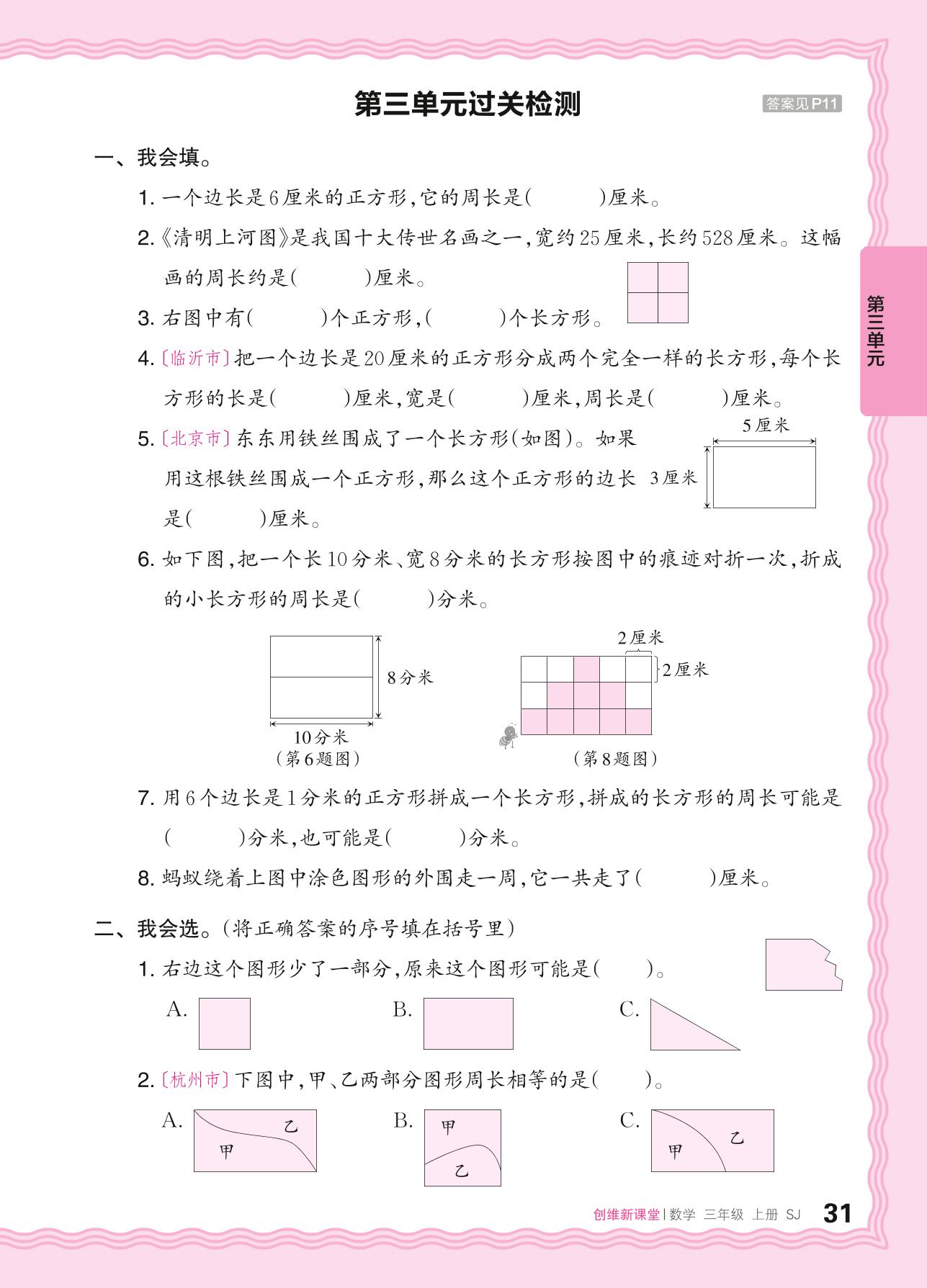 三年级数学苏教版上册单元卷
