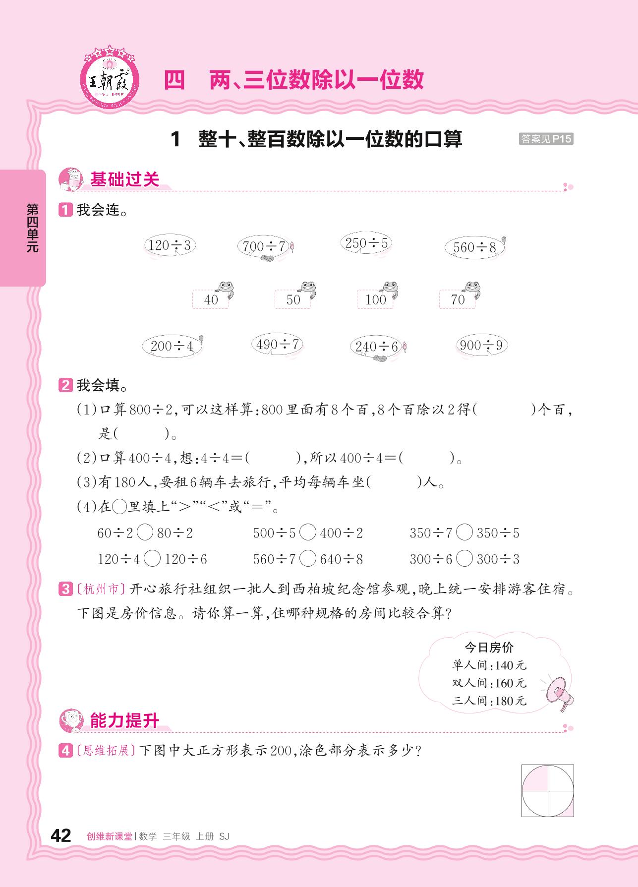 2024秋上册三年级数学苏教版 第四单元 两、三位数除以一位数——1. 整十、整百数除以一位数的口算_R240819181553532