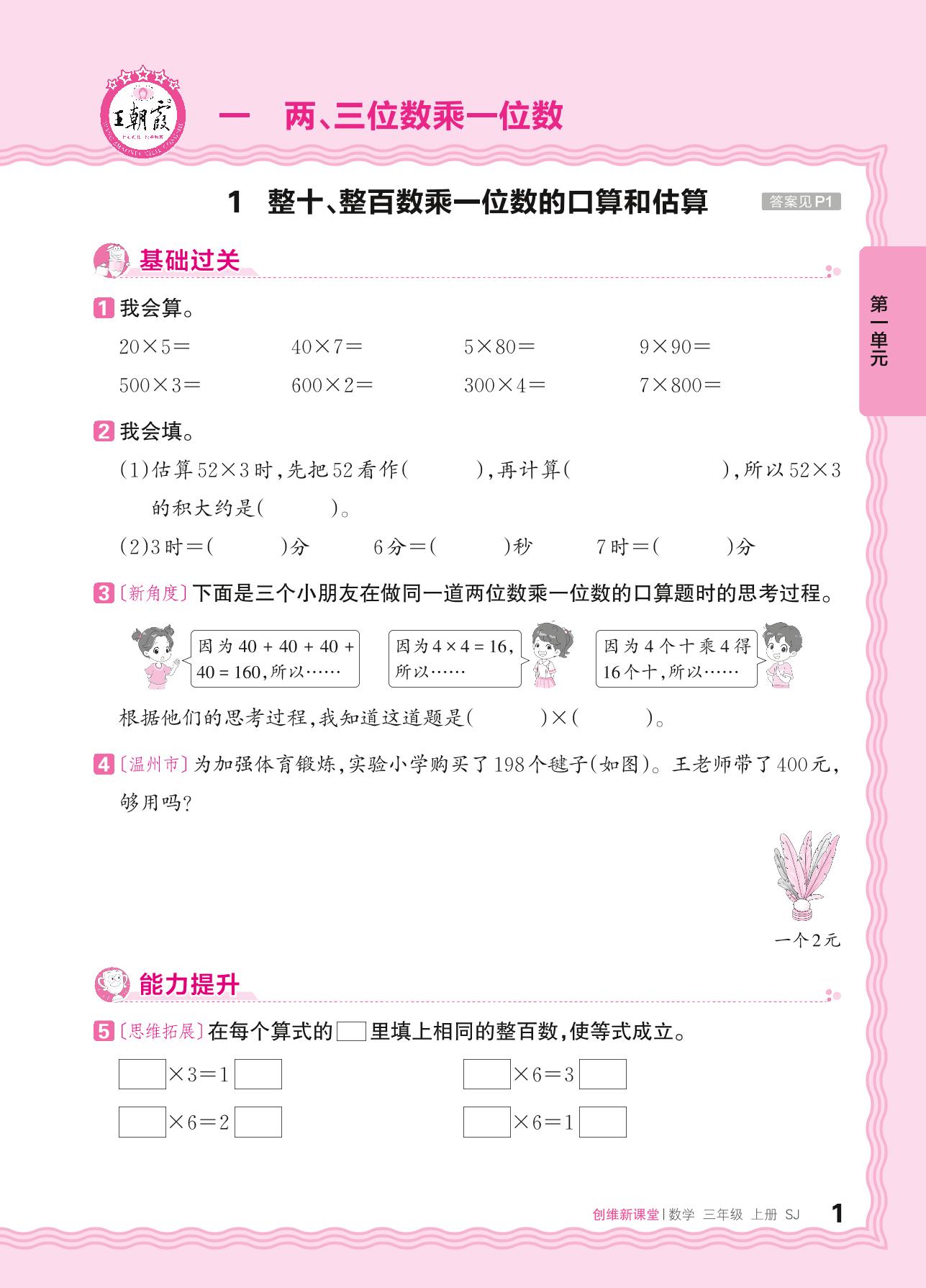 2024秋上册三年级数学苏教版 第一单元 两、三位数乘一位数——1. 整十、整百数乘一位数的口算和估算_R240819181558746