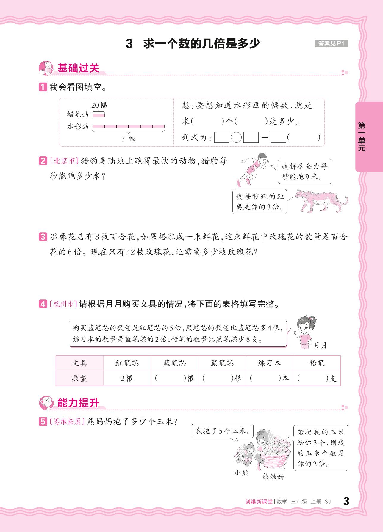 2024秋上册三年级数学苏教版 第一单元 两、三位数乘一位数——3. 求一个数的几倍是多少