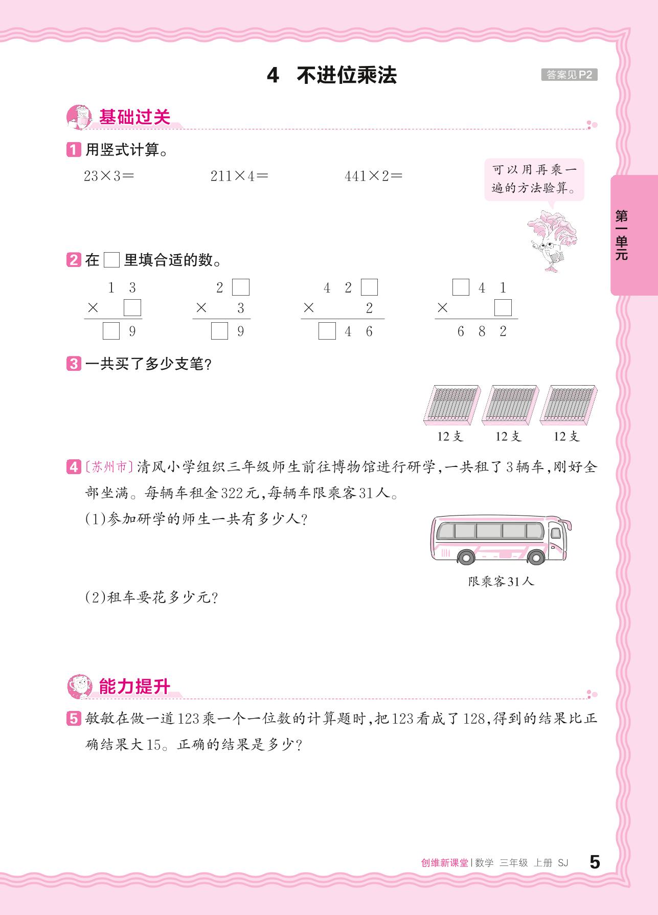2024秋上册三年级数学苏教版 第一单元 两、三位数乘一位数——4. 不进位乘法