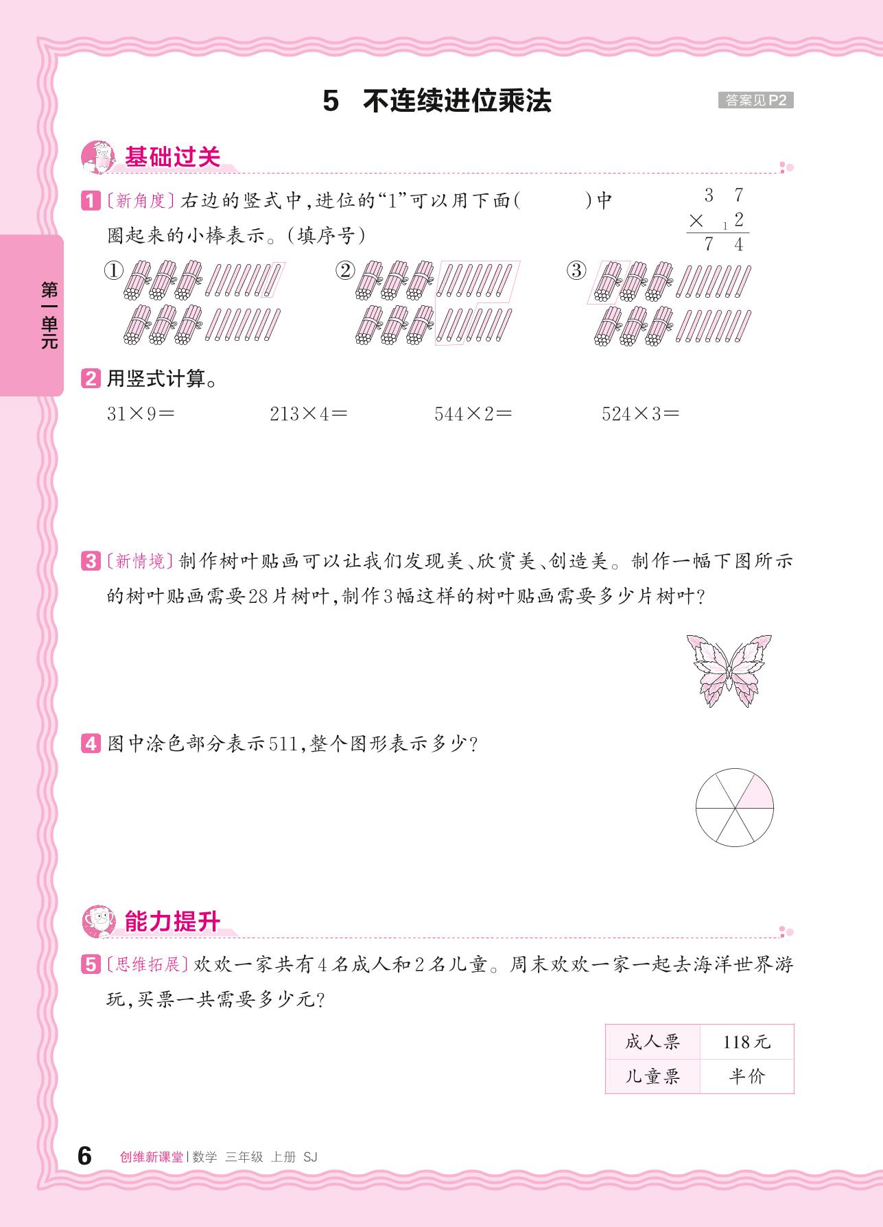 2024秋上册三年级数学苏教版 第一单元 两、三位数乘一位数——5. 不连续进位乘法