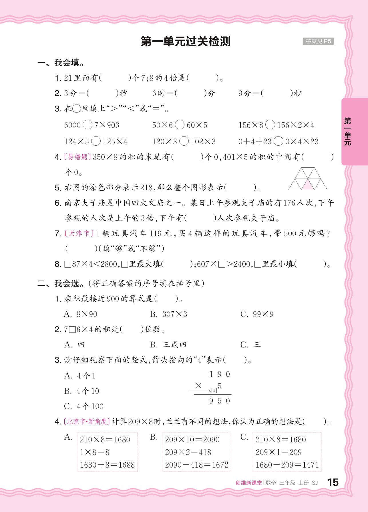 三年级数学苏教版上册单元卷