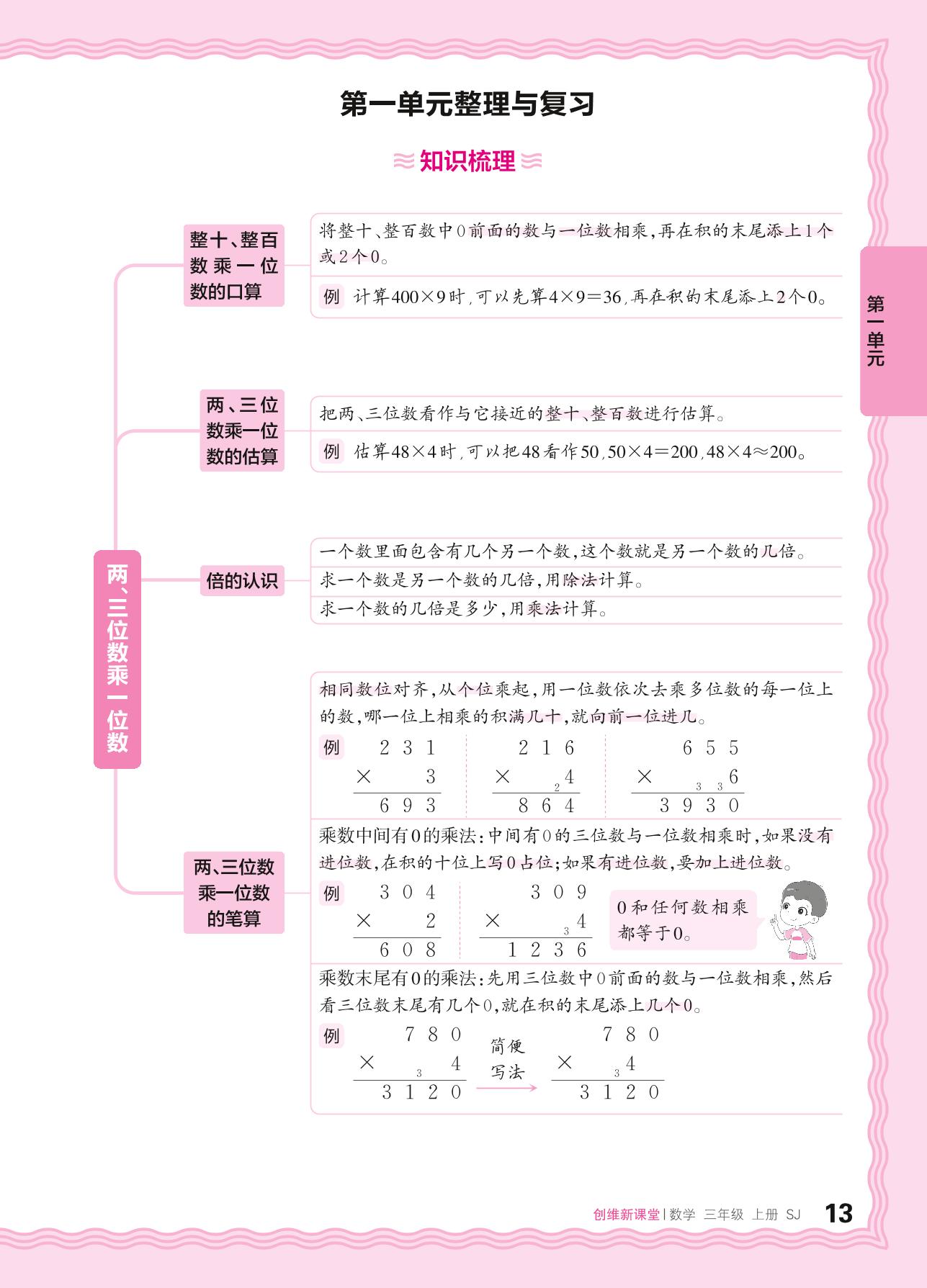 2024秋上册三年级数学苏教版 第一单元整理与复习
