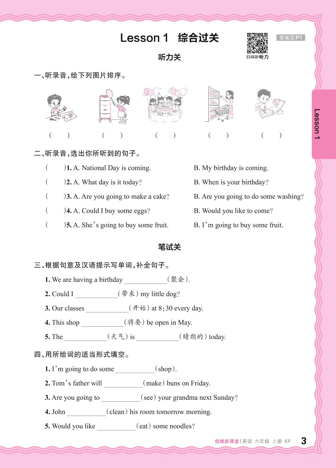 2024秋上册六年级英语科普版 Lesson 1 Are you going to have a birthday party?综合过关