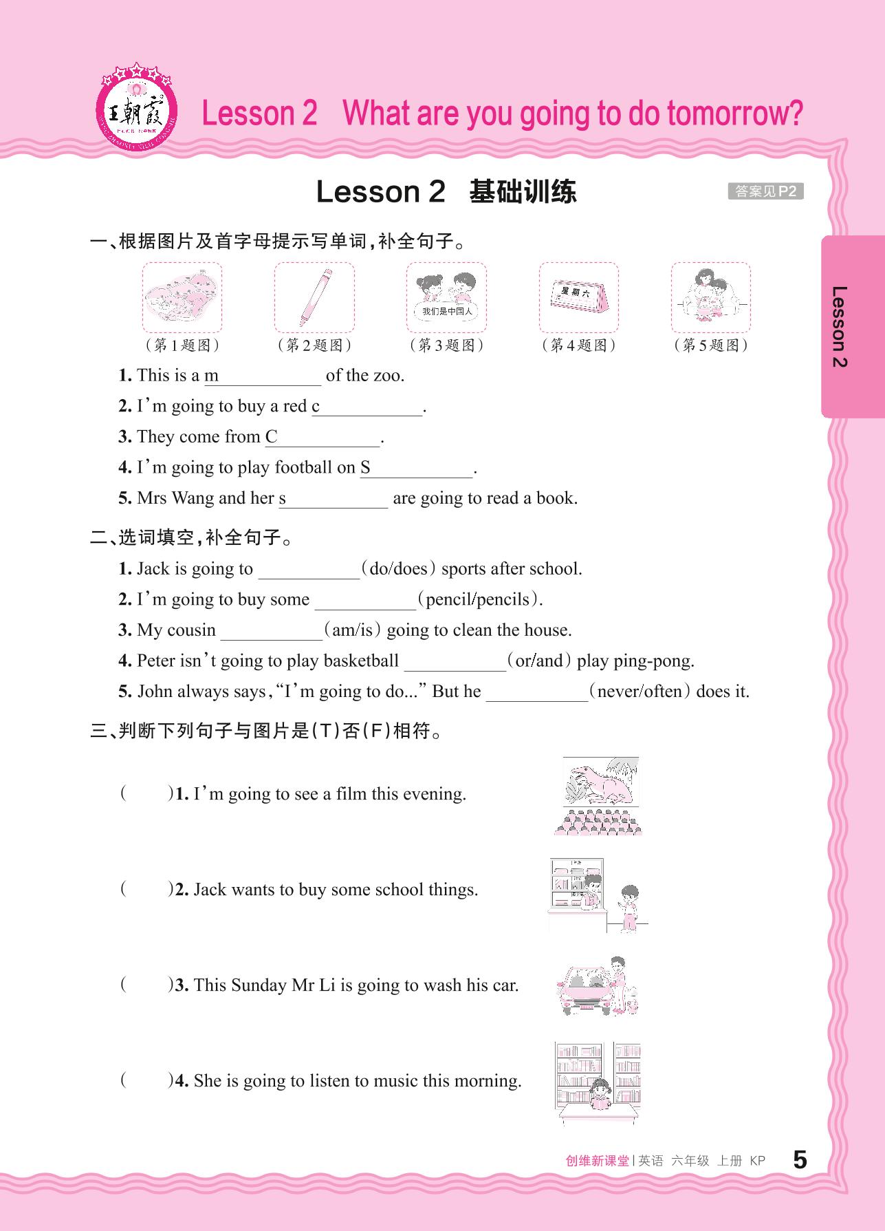 2024秋上册六年级英语科普版 Lesson 2 What are you going to do tomorrow?基础训练
