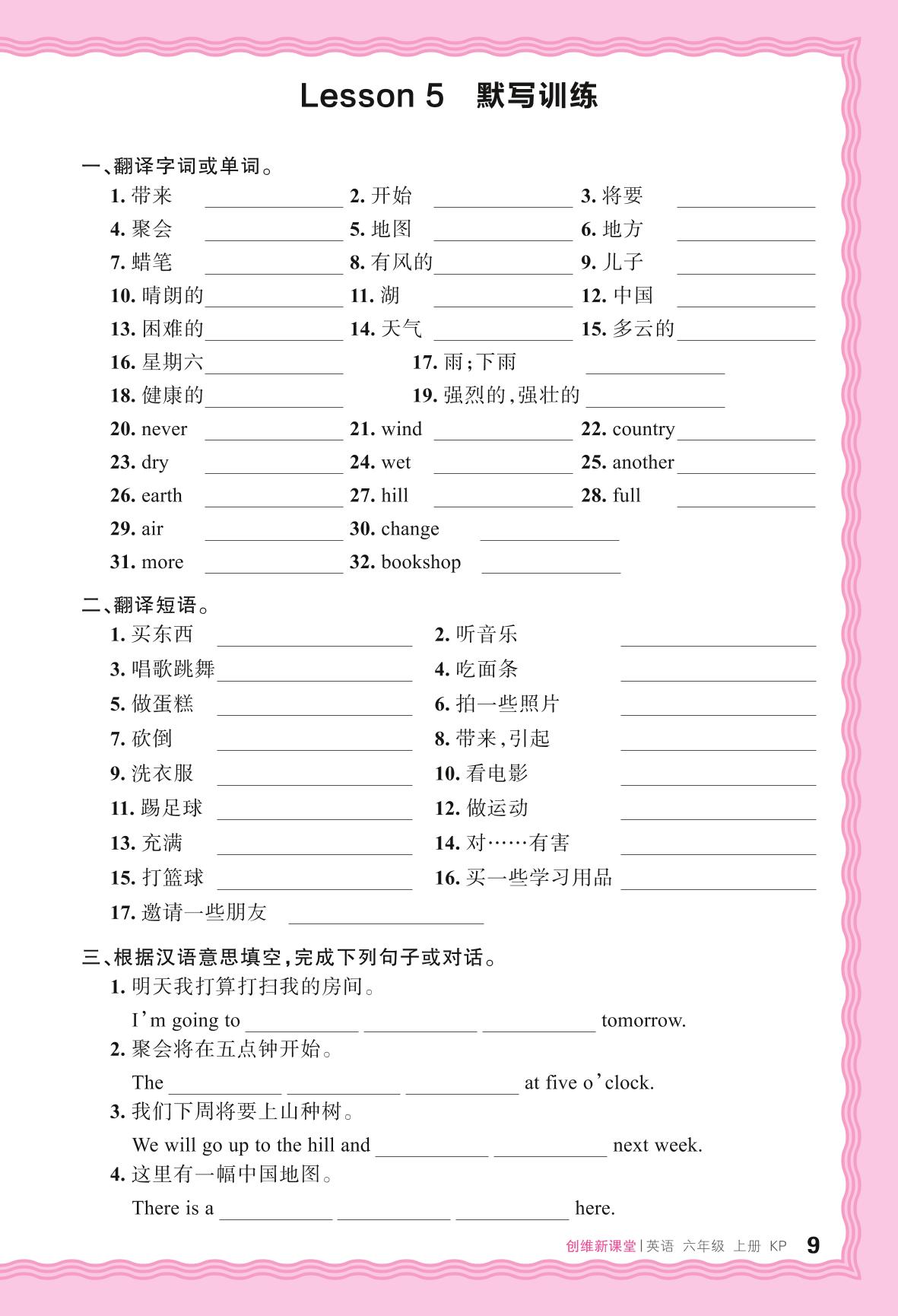 2024秋上册六年级英语科普版 Lesson 5 默写训练