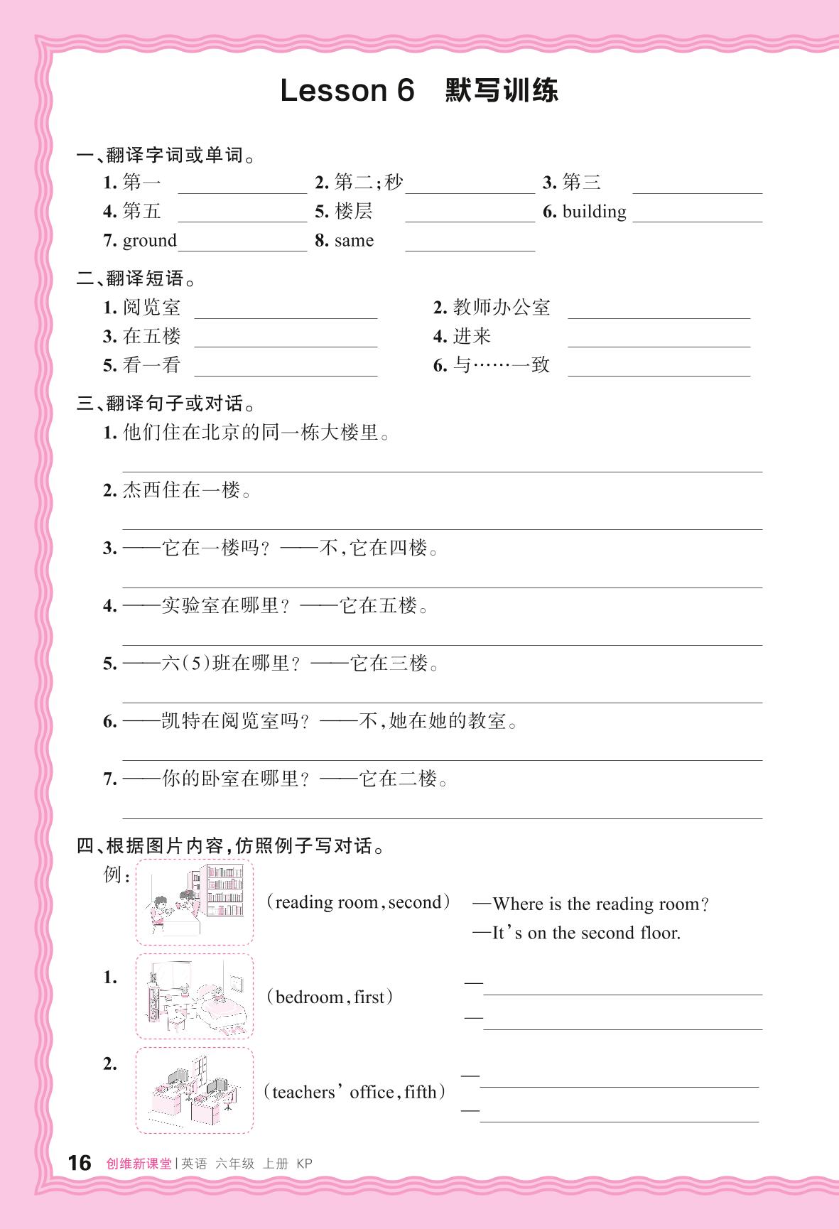2024秋上册六年级英语科普版 Lesson 6 默写训练