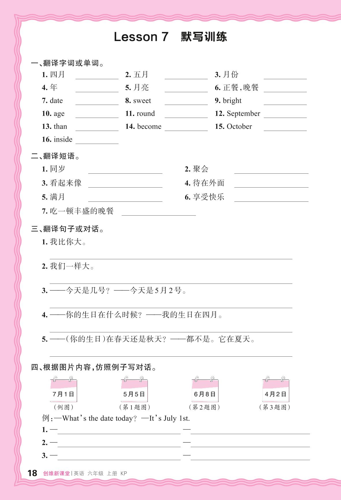 2024秋上册六年级英语科普版 Lesson 7 默写训练