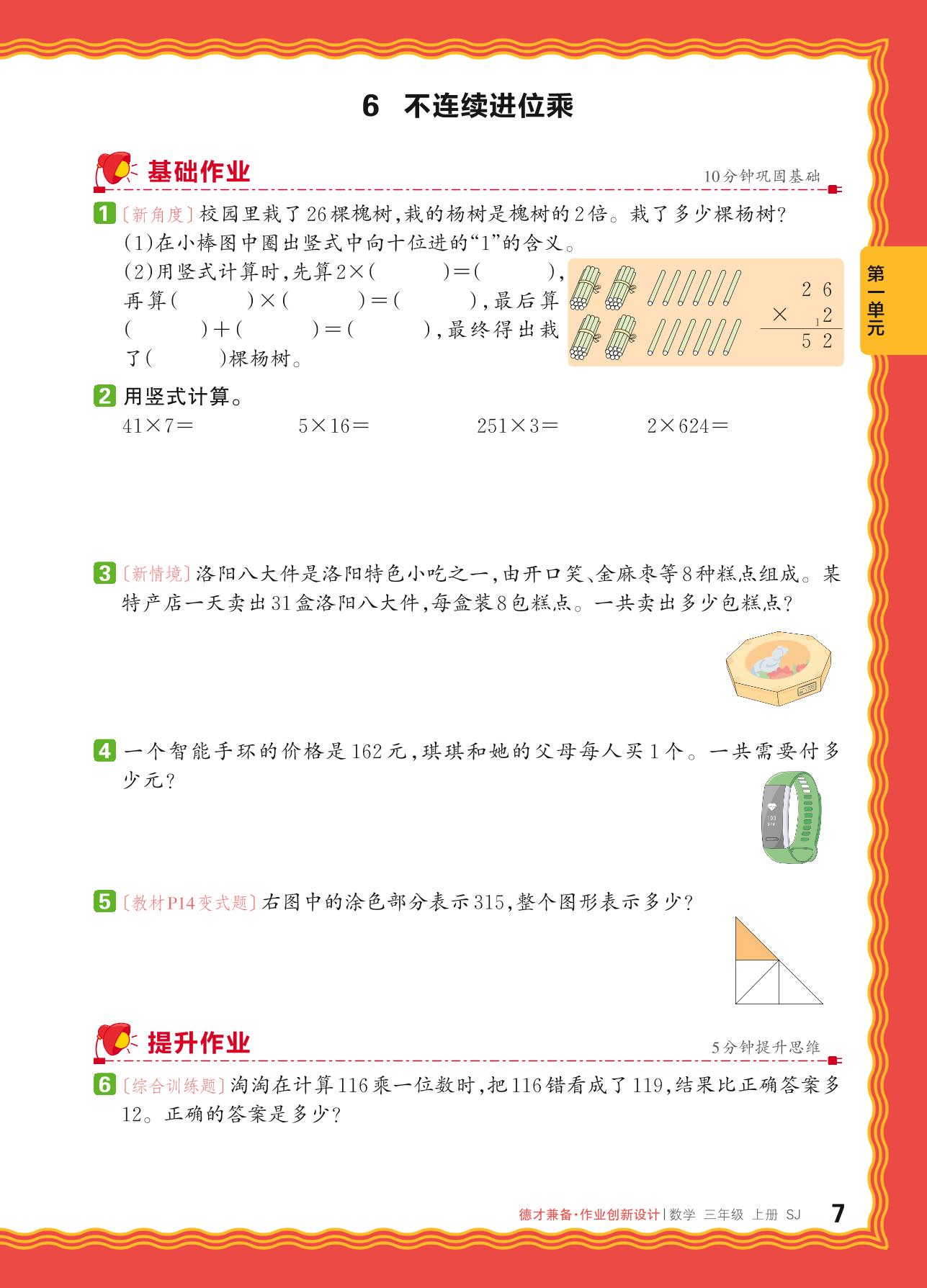 2024秋上册三年级数学苏教版 第一单元 两、三位数乘一位数——6. 不连续进位乘