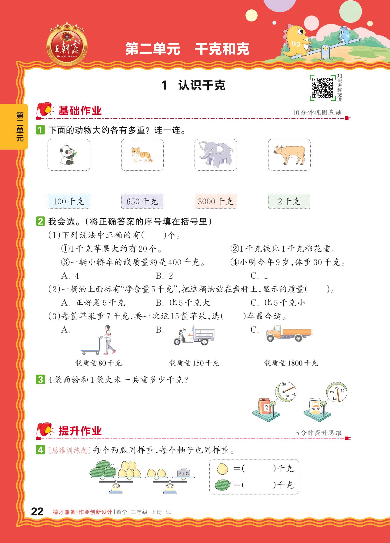 2024秋上册三年级数学苏教版 第二单元 千克和克——1. 认识千克