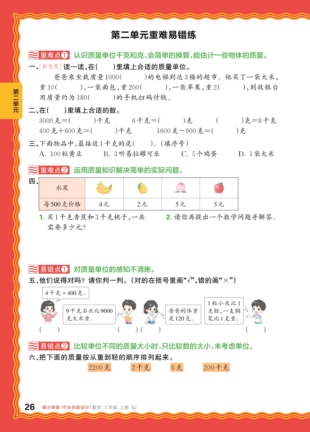 2024秋上册三年级数学苏教版 第二单元重难易错练