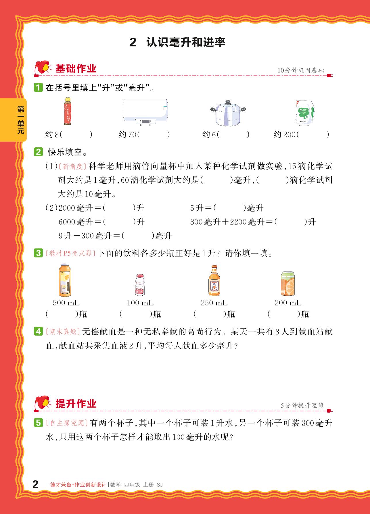 2024秋上册四年级数学苏教版 第一单元 升和毫升——2. 认识毫升和进率