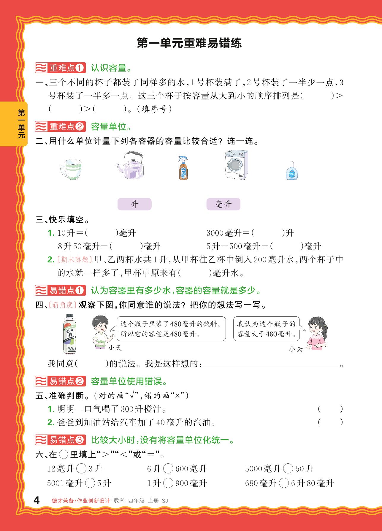 2024秋上册四年级数学苏教版 第一单元重难易错练