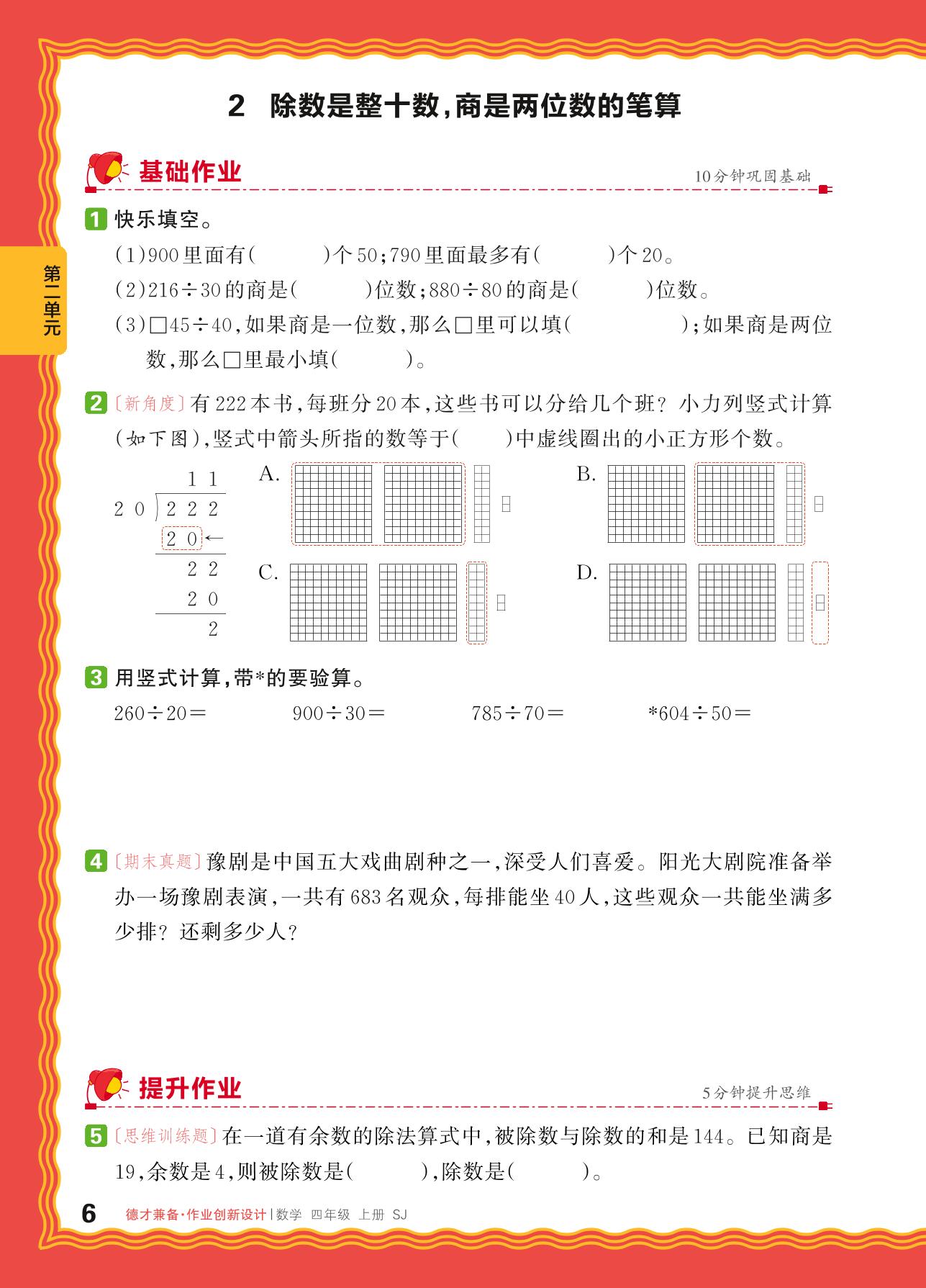 2024秋上册四年级数学苏教版 第二单元 两、三位数除以两位数——2. 除数是整十数,商是两位数的笔算