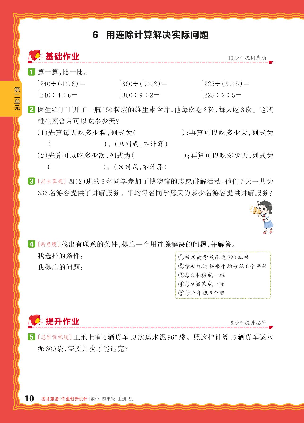 2024秋上册四年级数学苏教版 第二单元 两、三位数除以两位数——6. 用连除计算解决实际问题