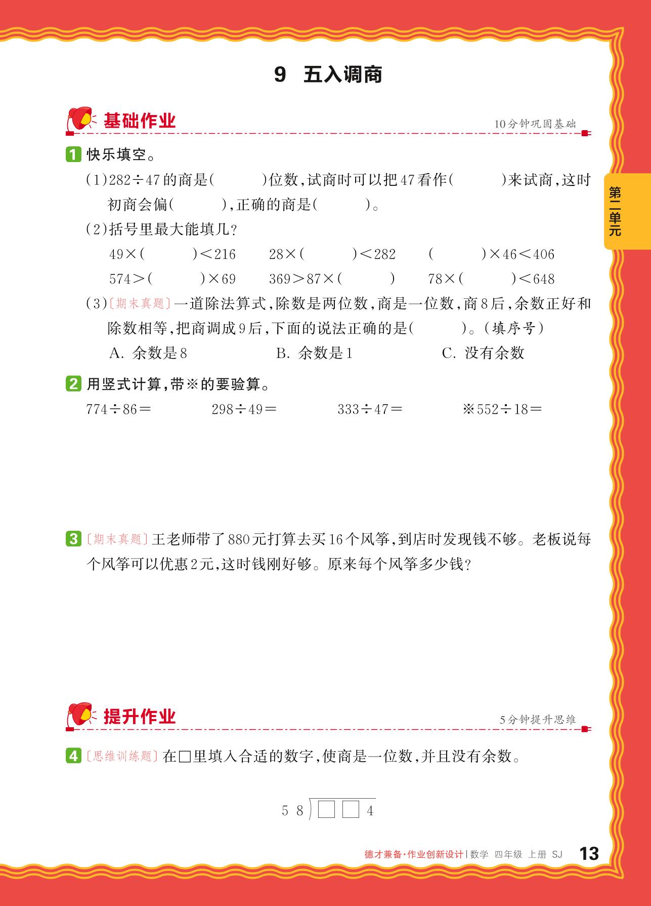 2024秋上册四年级数学苏教版 第二单元 两、三位数除以两位数——9. 五入调商