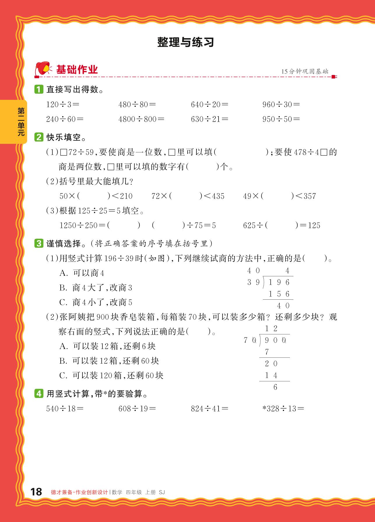 2024秋上册四年级数学苏教版 第二单元 两、三位数除以两位数——整理与练习