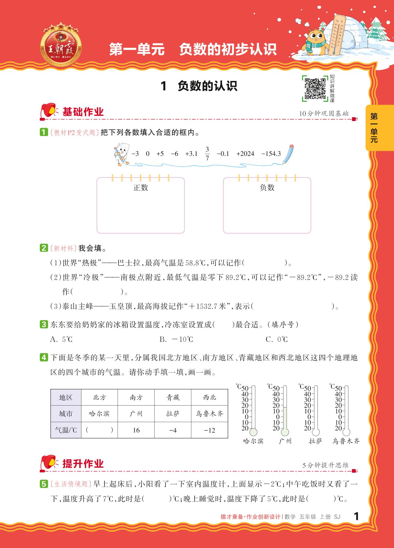 2024秋上册五年级数学苏教版 第一单元 负数的初步认识——1. 负数的认识