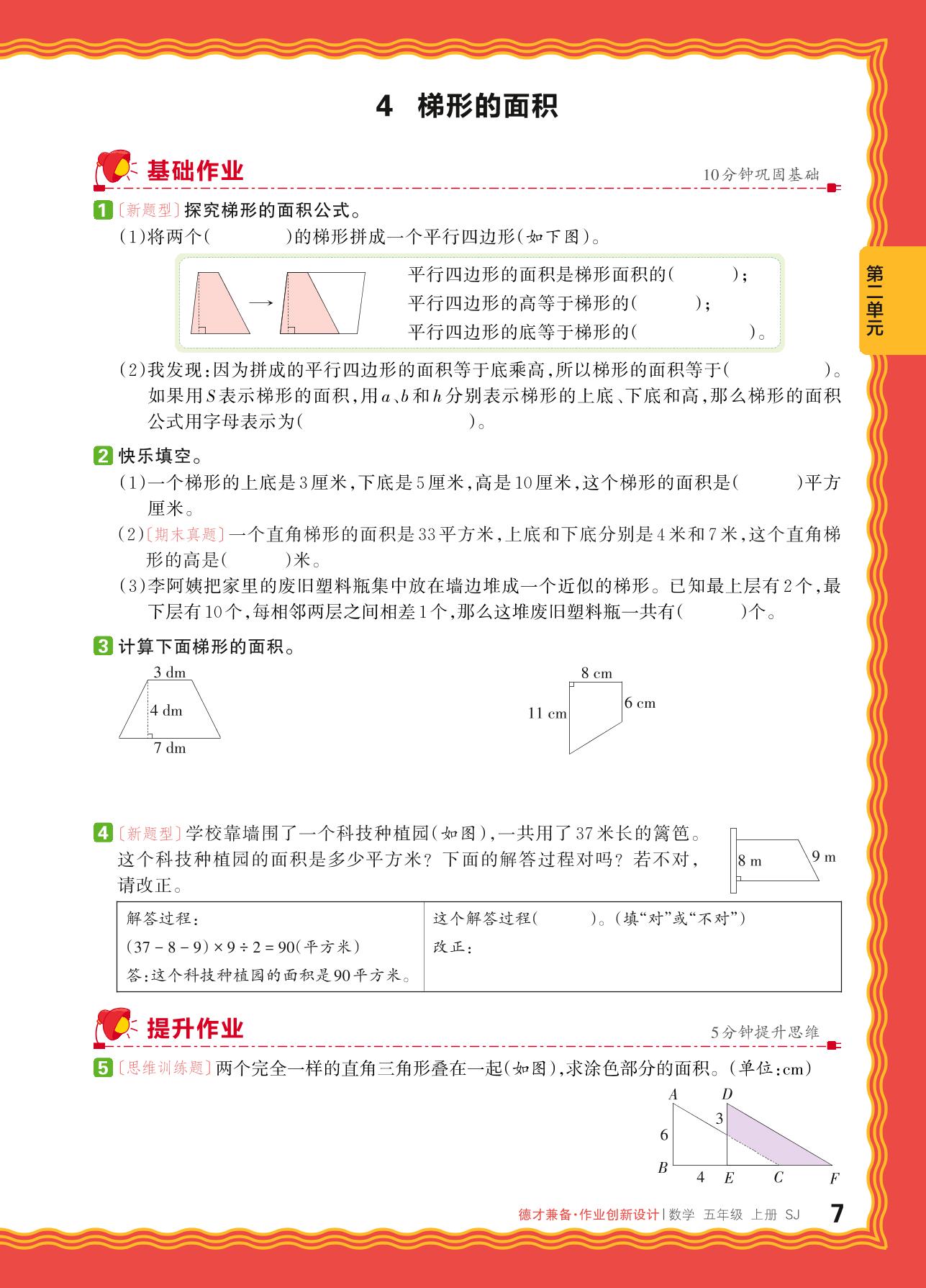 2024秋上册五年级数学苏教版 第二单元 多边形的面积——4. 梯形的面积