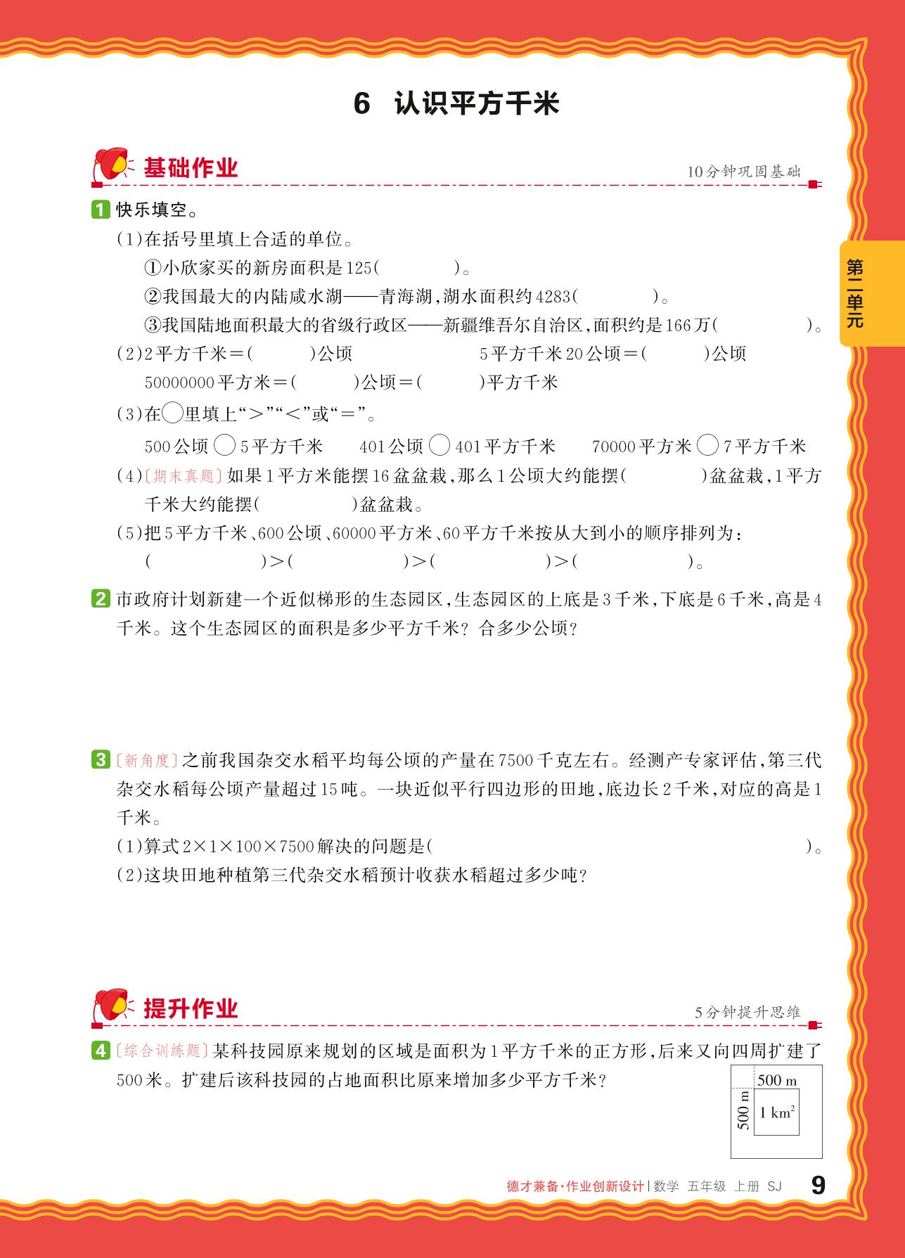2024秋上册五年级数学苏教版 第二单元 多边形的面积——6. 认识平方千米