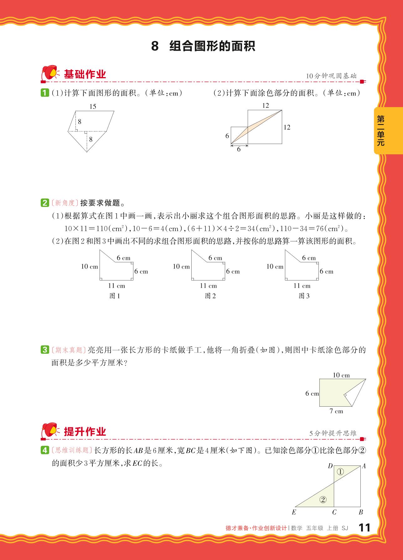 2024秋上册五年级数学苏教版 第二单元 多边形的面积——8. 组合图形的面积