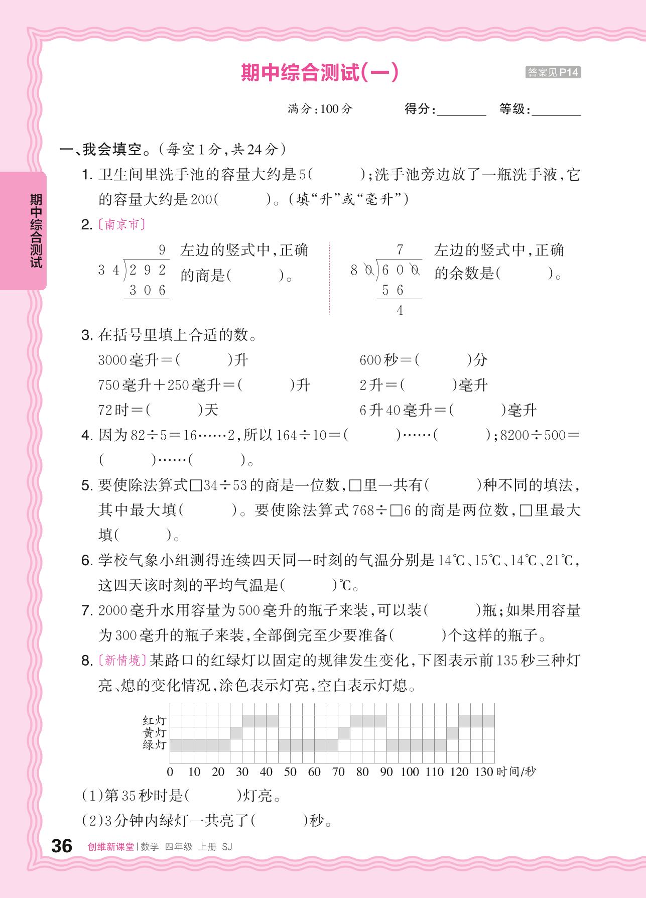 2024秋上册四年级数学苏教版 期中综合测试(一)