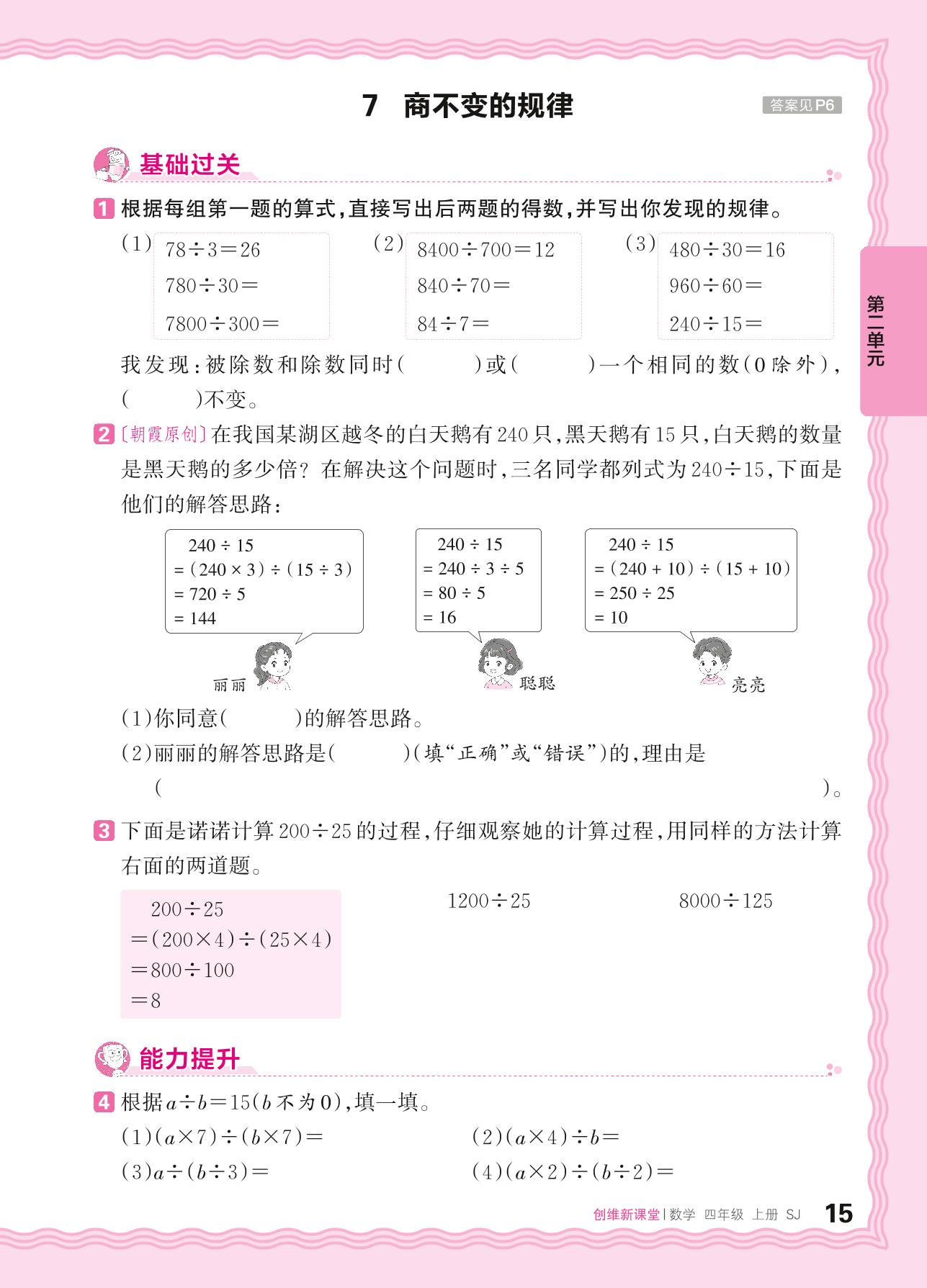 2024秋上册四年级数学苏教版 第二单元 两、三位数除以两位数——7. 商不变的规律