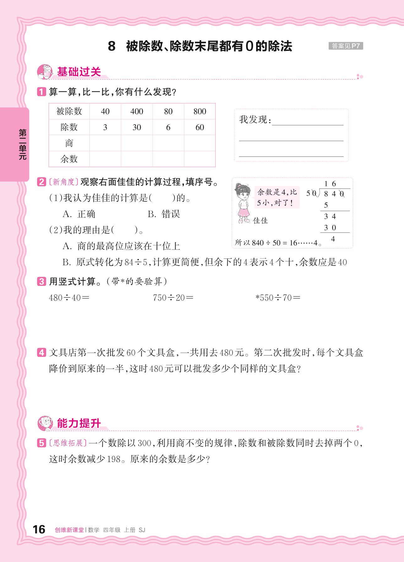 2024秋上册四年级数学苏教版 第二单元 两、三位数除以两位数——8. 被除数、除数末尾都有0的除法