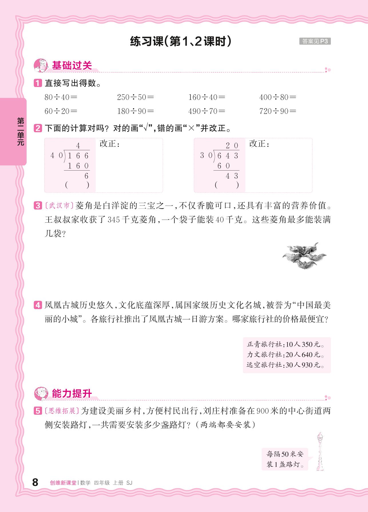 2024秋上册四年级数学苏教版 第二单元 两、三位数除以两位数——除数是整十数,商是一(两)位数的口算和笔算练习课
