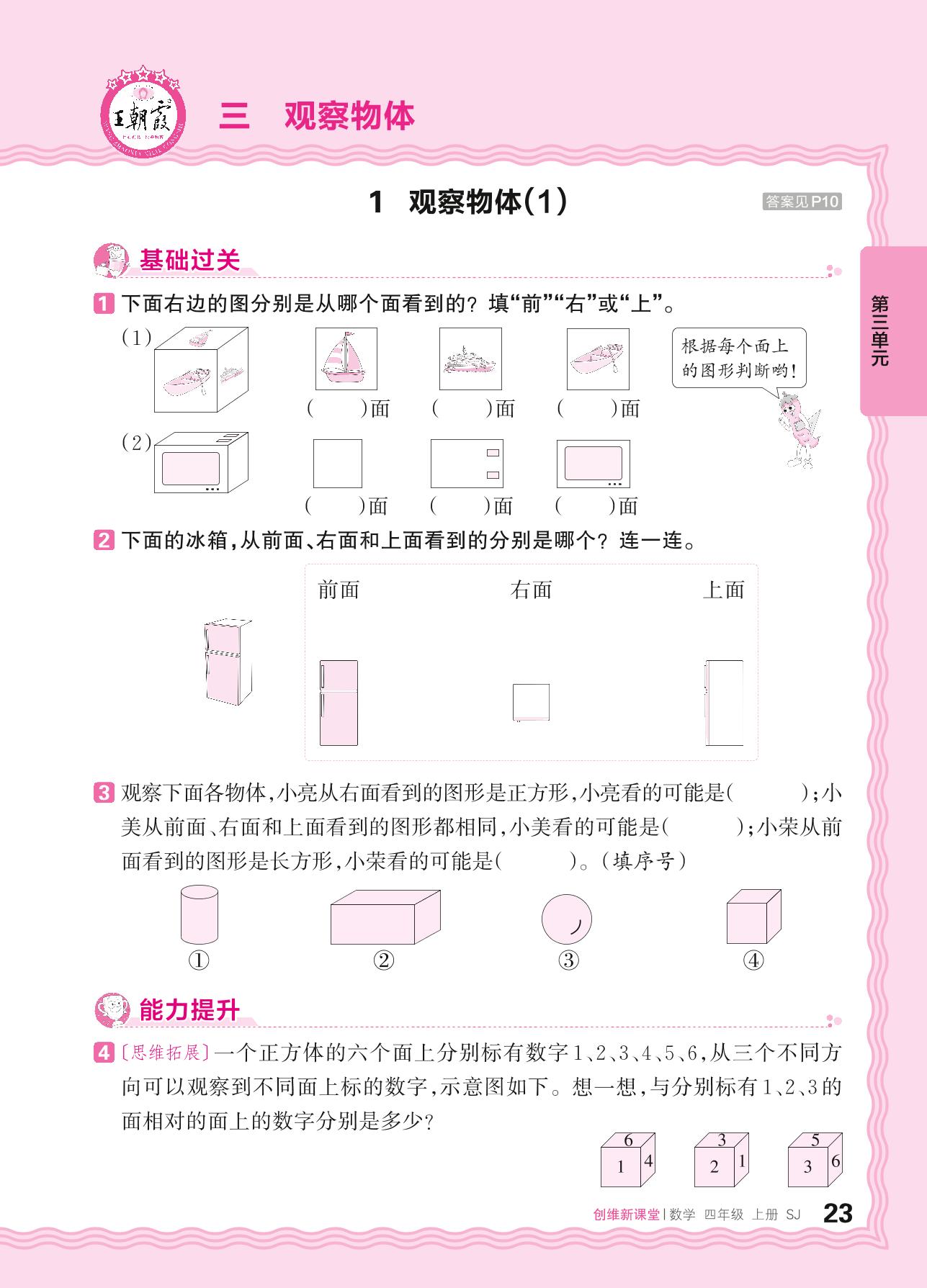 2024秋上册四年级数学苏教版 第三单元 观察物体——1. 观察物体(1)