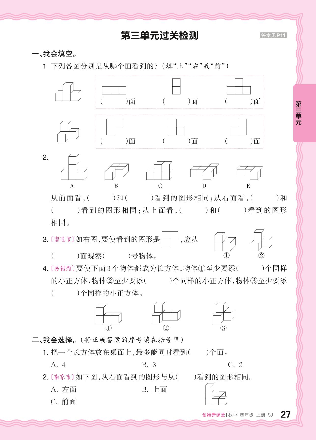2024秋上册四年级数学苏教版 第三单元过关检测