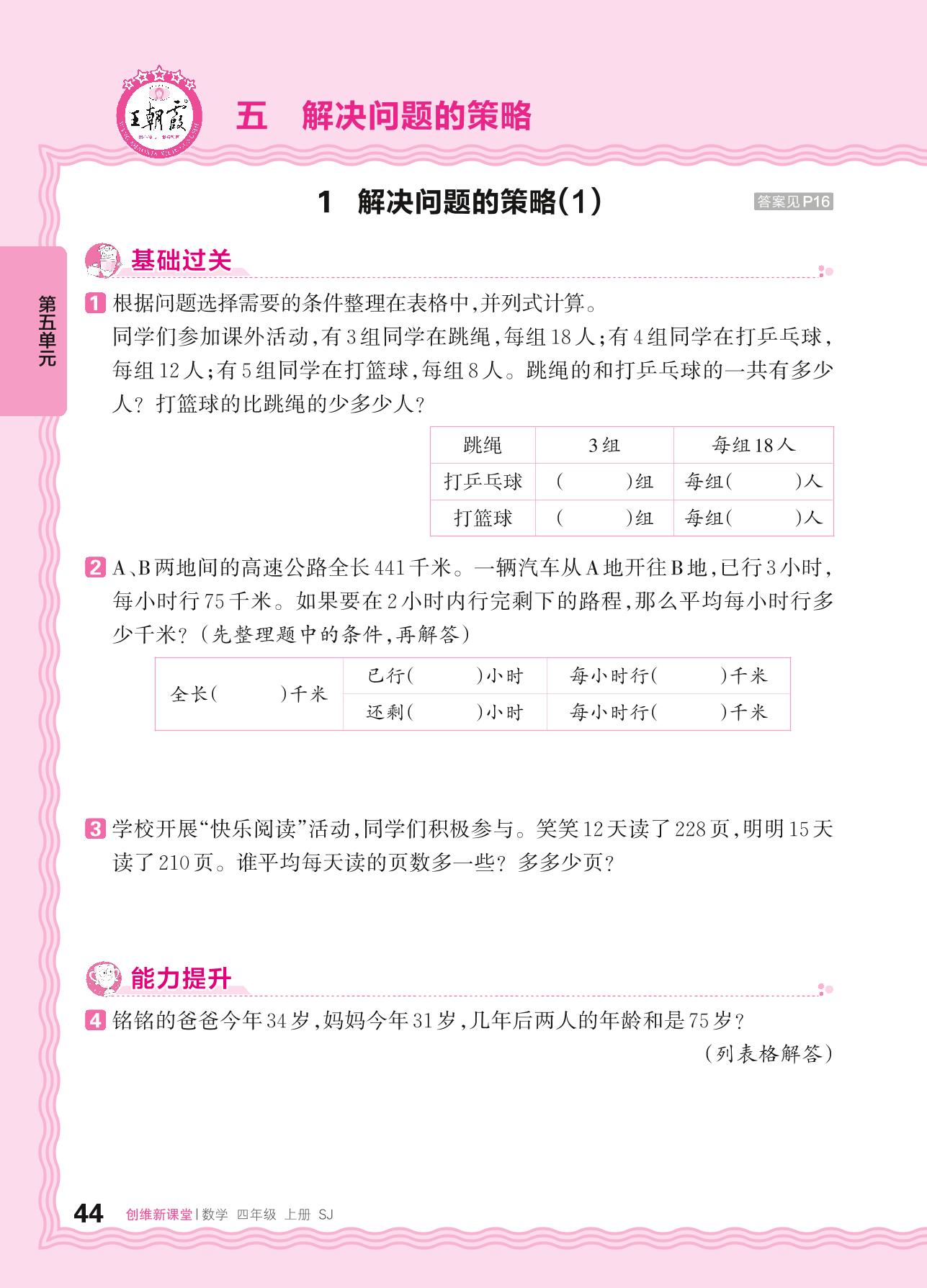 2024秋上册四年级数学苏教版 第五单元 解决问题的策略——1. 解决问题的策略(1)