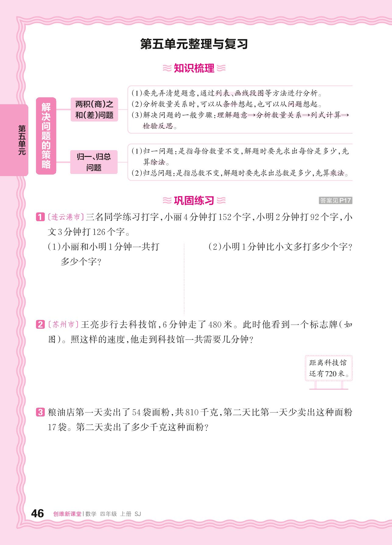 2024秋上册四年级数学苏教版 第五单元整理与复习