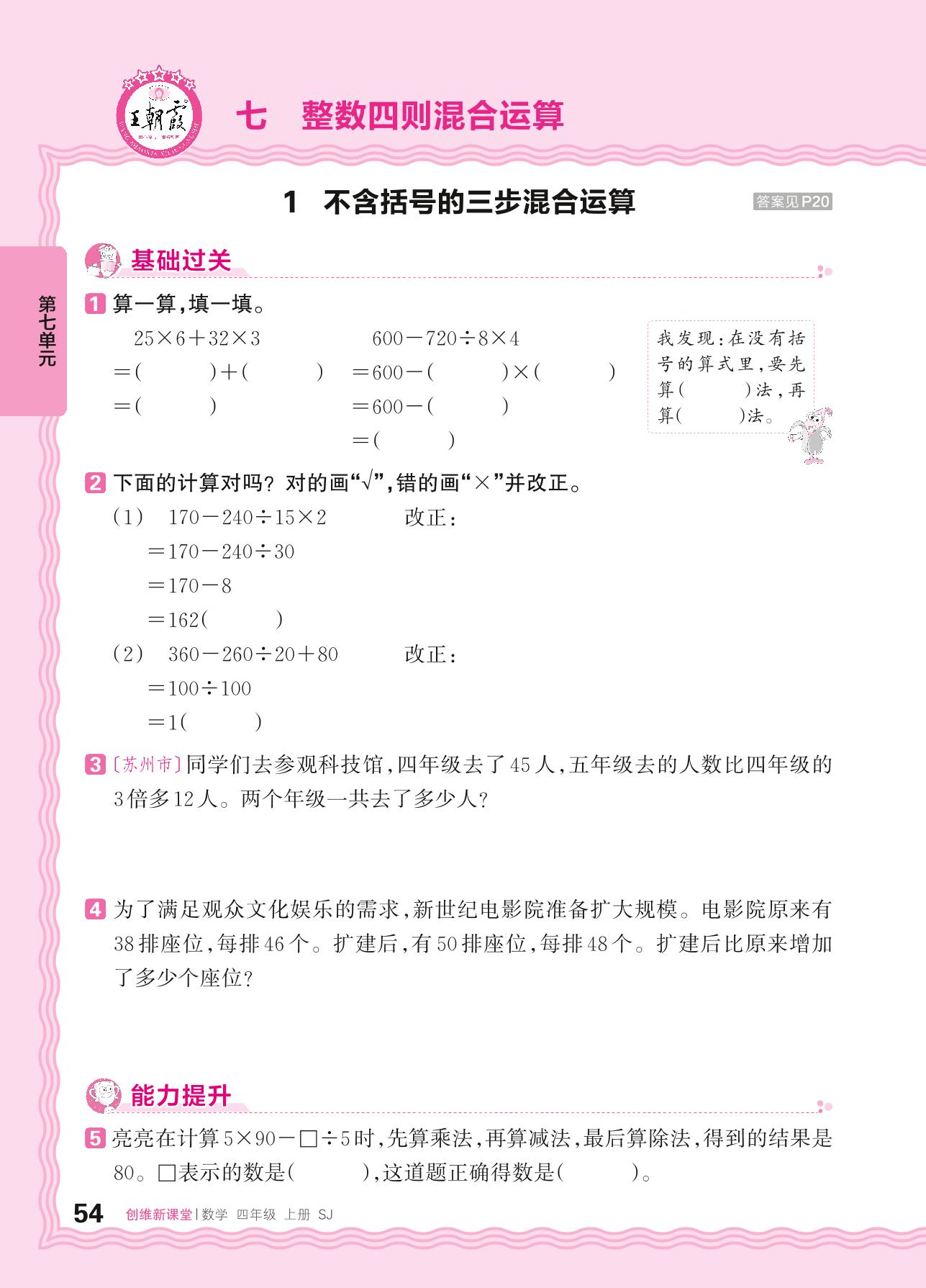 2024秋上册四年级数学苏教版 第七单元 整数四则混合运算——1. 不含括号的三步混合运算