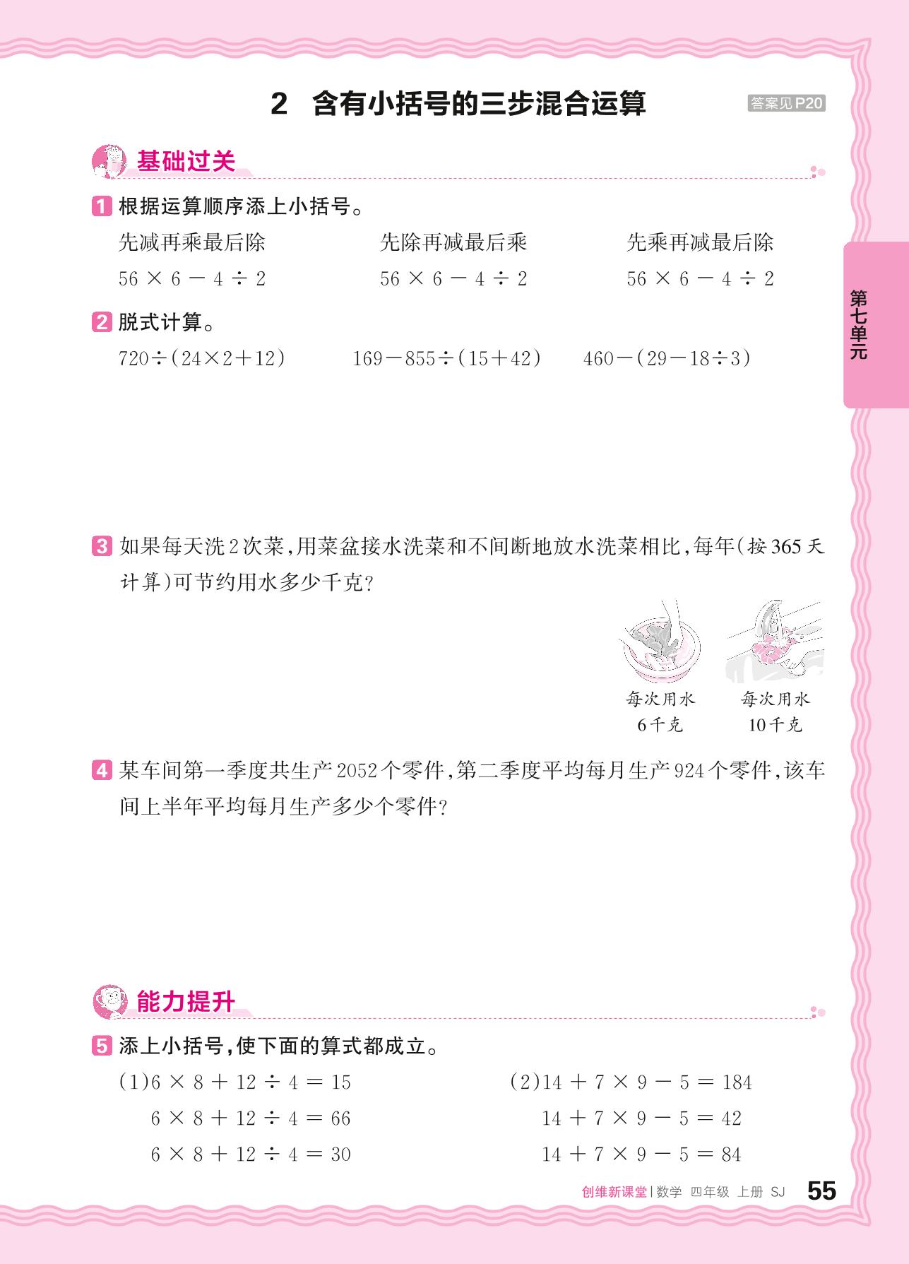 2024秋上册四年级数学苏教版 第七单元 整数四则混合运算——2. 含有小括号的三步混合运算