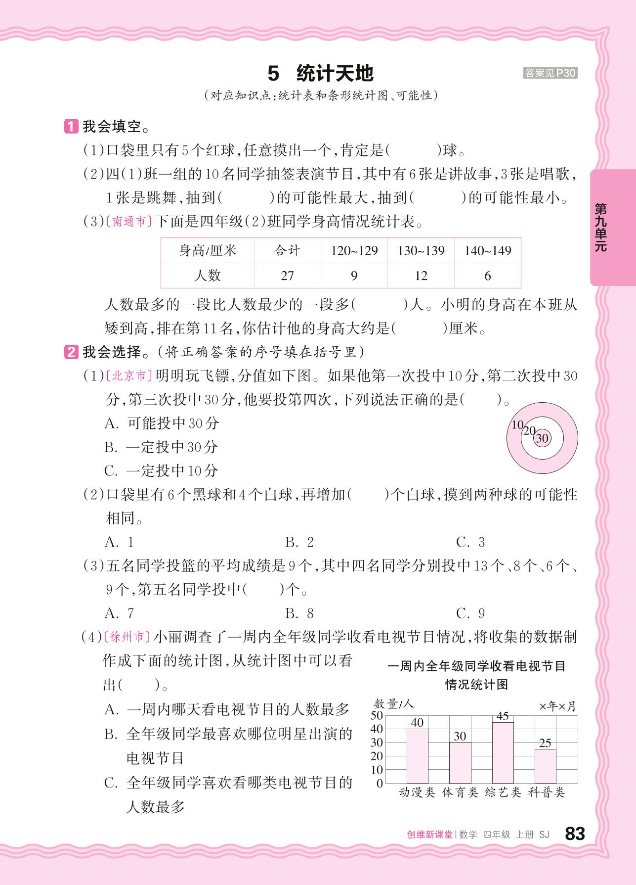 2024秋上册四年级数学苏教版 第九单元 整理与复习——5. 统计天地