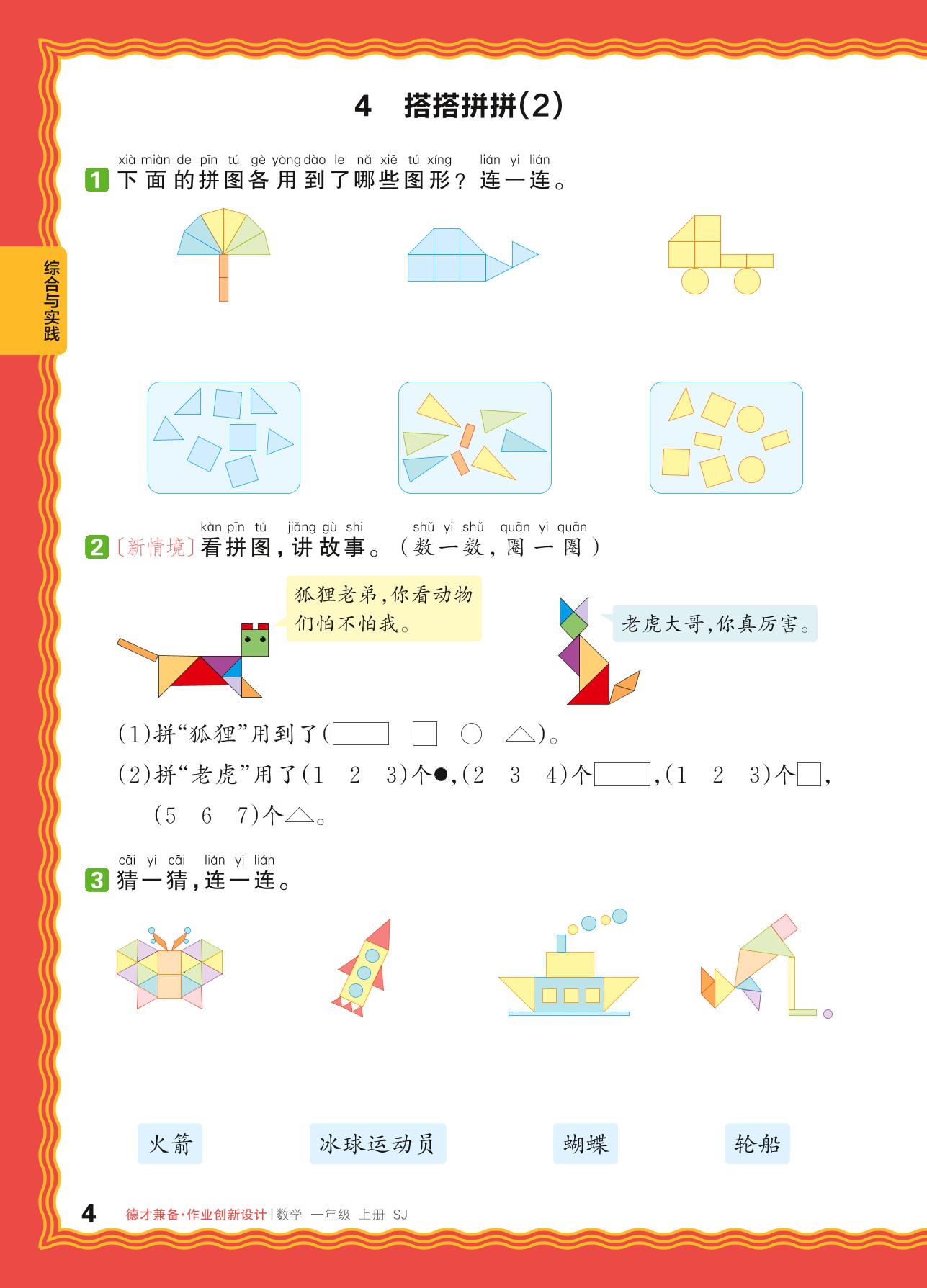 2024秋上册一年级数学苏教版 数学游戏分享——4. 搭搭拼拼(2)