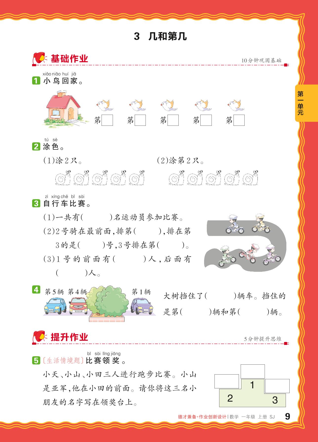 2024秋上册一年级数学苏教版 第一单元 0~5的认识和加减法——3. 几和第几_R240819113316624