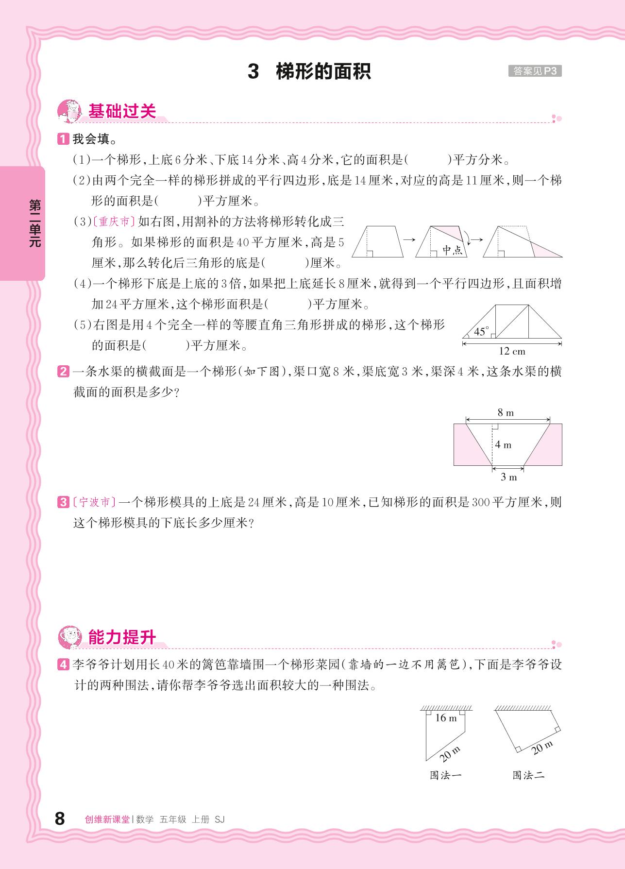 2024秋上册五年级数学苏教版 第二单元 多边形的面积 ——3. 梯形的面积