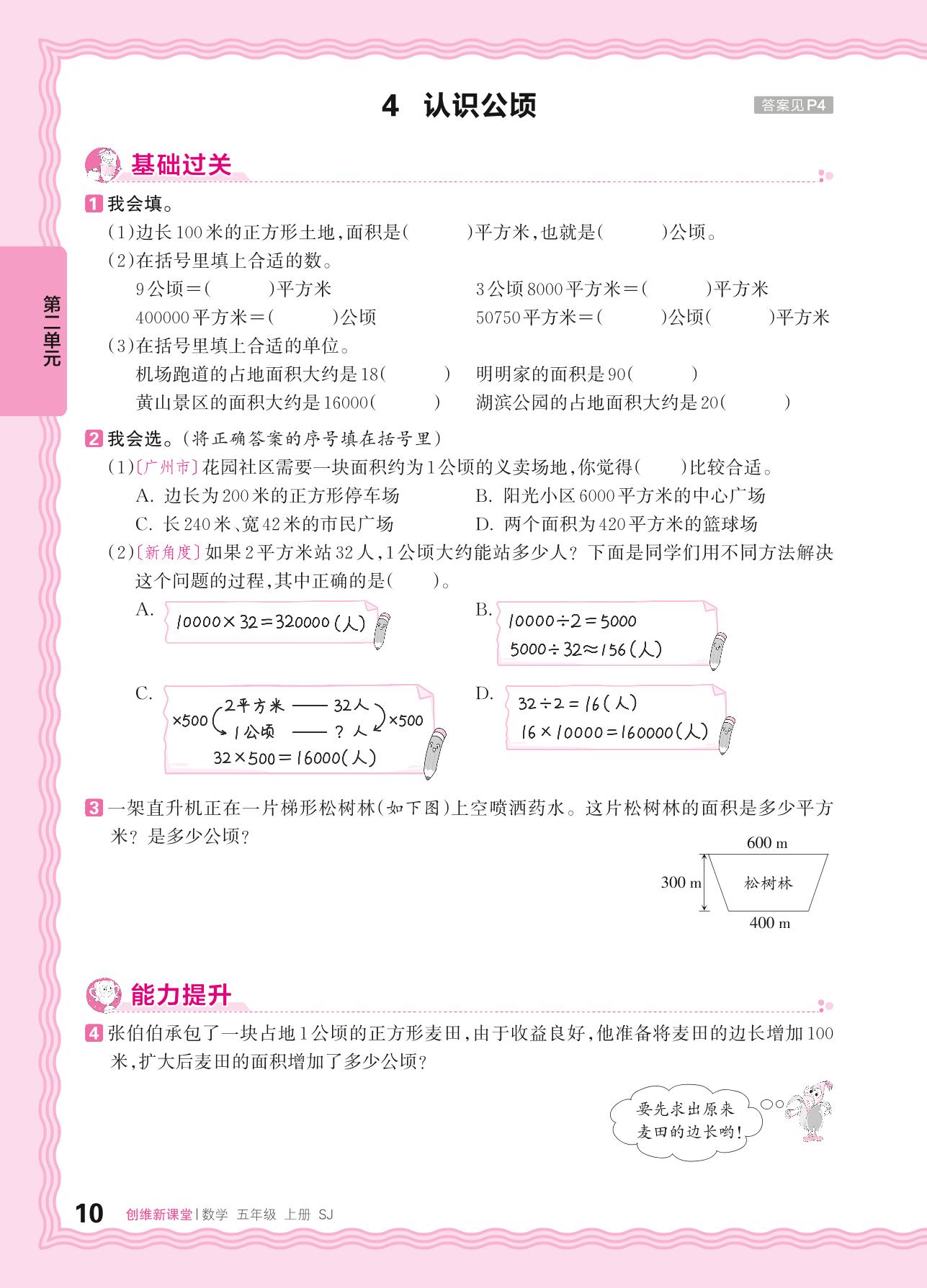 2024秋上册五年级数学苏教版 第二单元 多边形的面积 ——4. 认识公顷