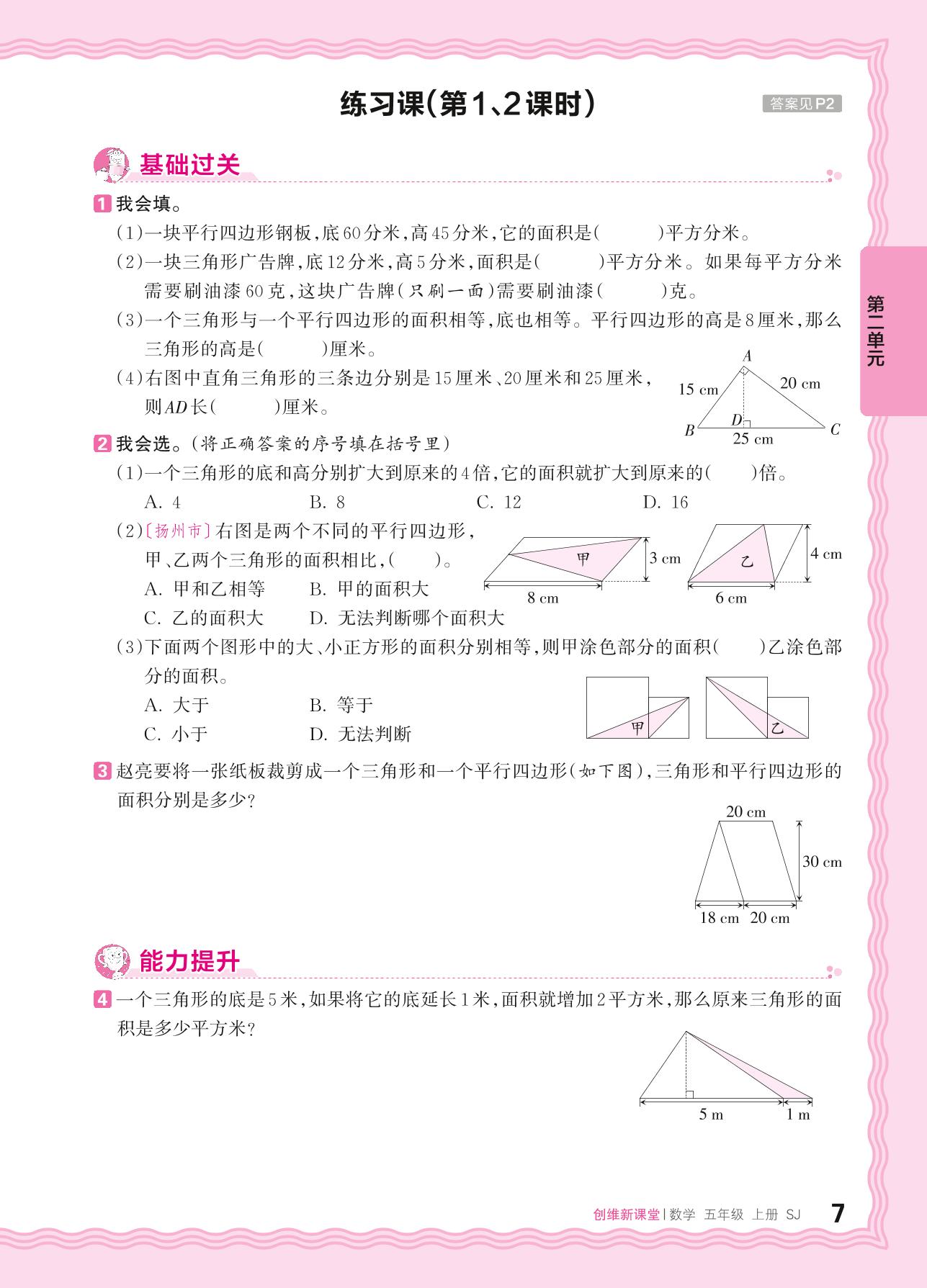 2024秋上册五年级数学苏教版 第二单元 多边形的面积 ——平行四边形和三角形的面积练习课
