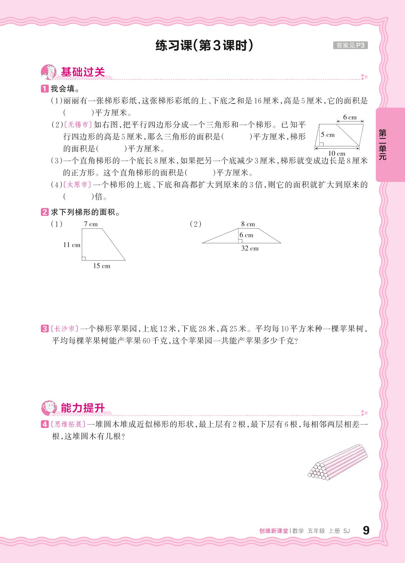 2024秋上册五年级数学苏教版 第二单元 多边形的面积 ——梯形的面积练习课