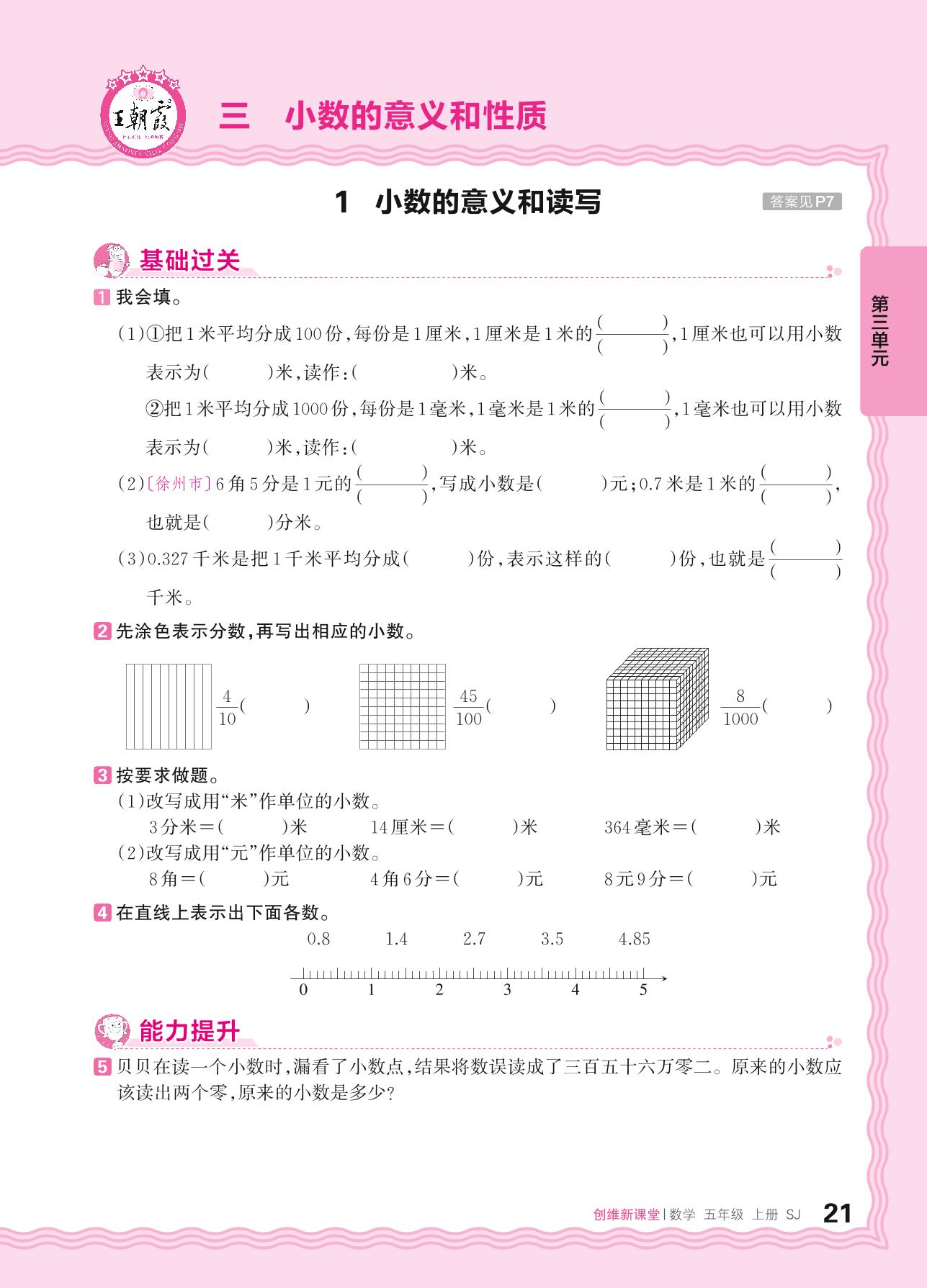 2024秋上册五年级数学苏教版 第三单元 小数的意义和性质——1. 小数的意义和读写