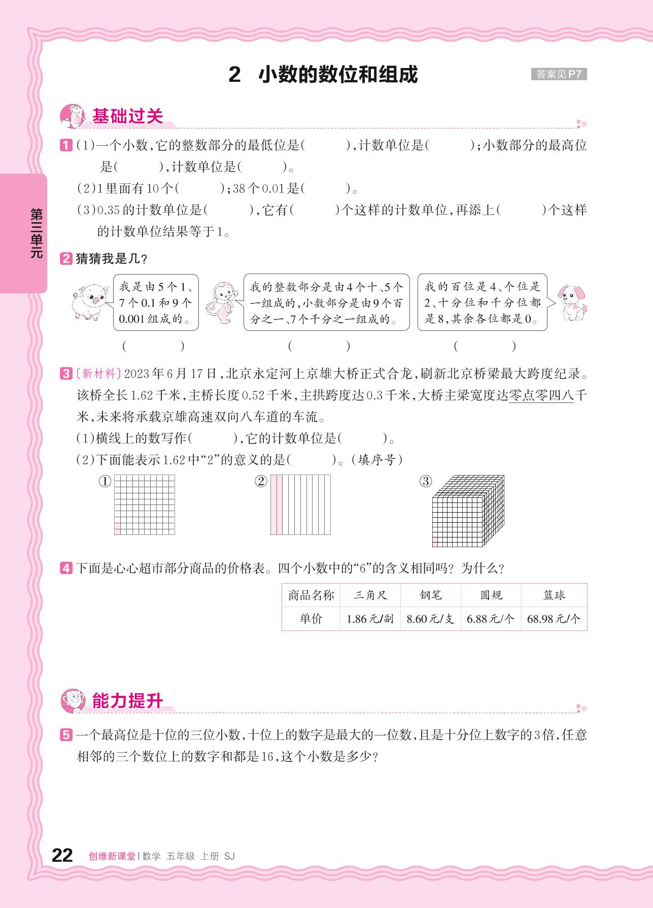 2024秋上册五年级数学苏教版 第三单元 小数的意义和性质——2. 小数的数位和组成